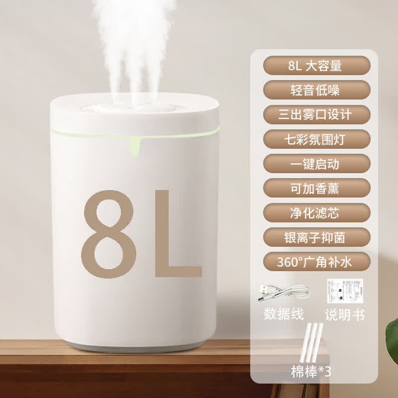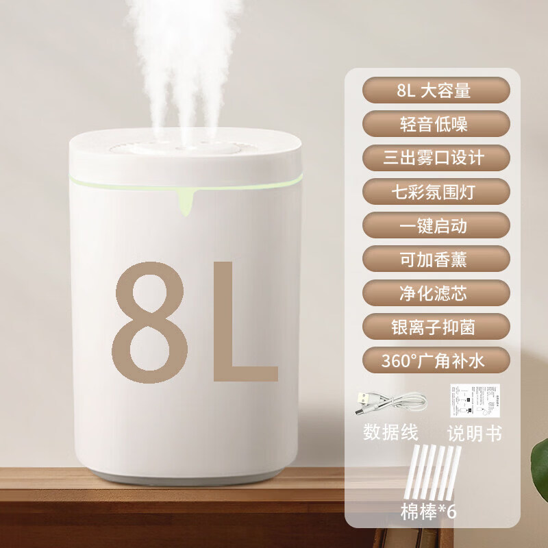 小米宝宝加湿器家用卧室香薰机静音超大喷雾大容量办公桌面小型母婴 白色【8升+3喷】3根棉棒