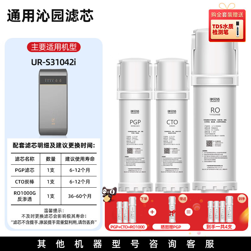 净贝洁适配沁园净水器滤芯通沁园净水器滤芯UR-S5976i/51048/51046/31042/A5970i/RO膜CTO 全套3+2=5支装UR-S31048i