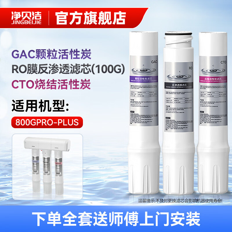 净贝洁适配怡口净水机器滤芯800GPRO/SPRO/FFDC/HPRO/CPRO/ERO001/002-3 全套3支装:800GPRO-PLUS
