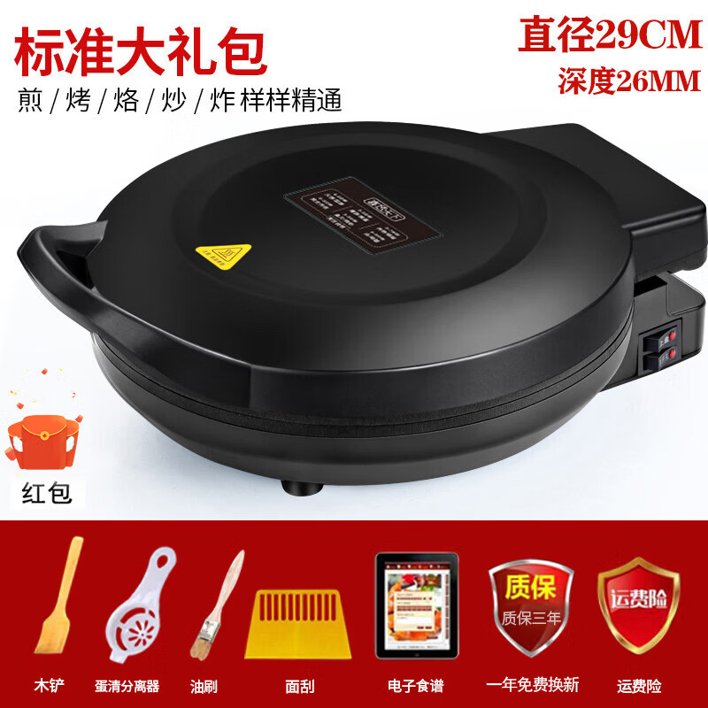 小米宝宝新款电饼铛家用双面加热加深加大烙饼锅小型煎薄饼机自动断电饼档 新款29钻石黑带标准