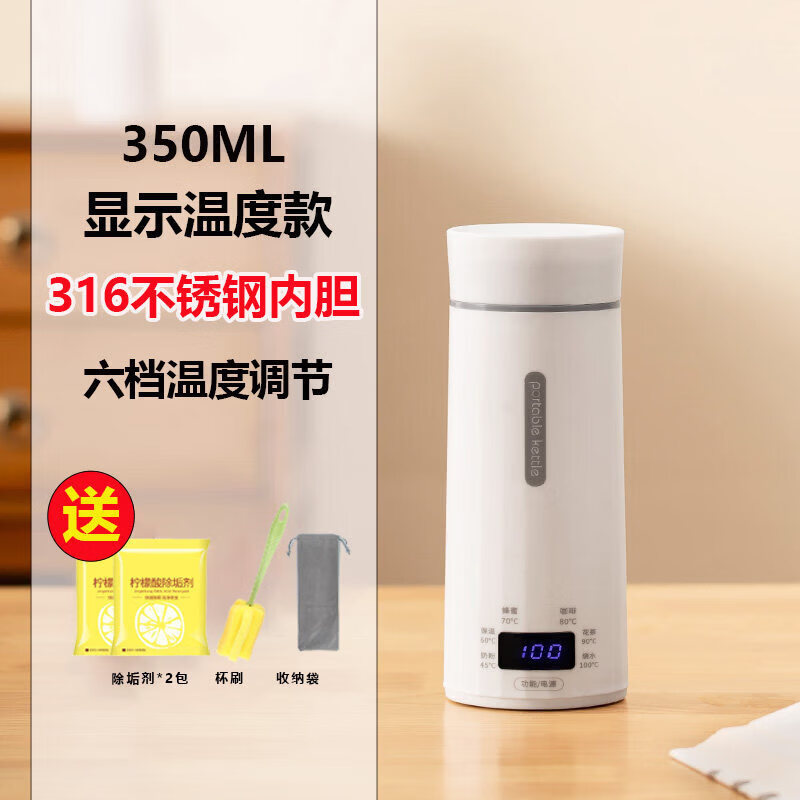小米宝宝便携式旅行电热水杯烧水壶保温迷你小型轻量家用办公室神器烧水杯 0.35L 【温度显示款】316不锈钢内胆