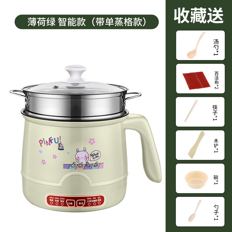 小米宝宝小电锅家用2025新款电饭煲2到3人婴儿蒸煮煎炒一体锅煮泡面锅插电 智能绿色+1蒸笼 可保温煮饭炒菜 送礼品 2L