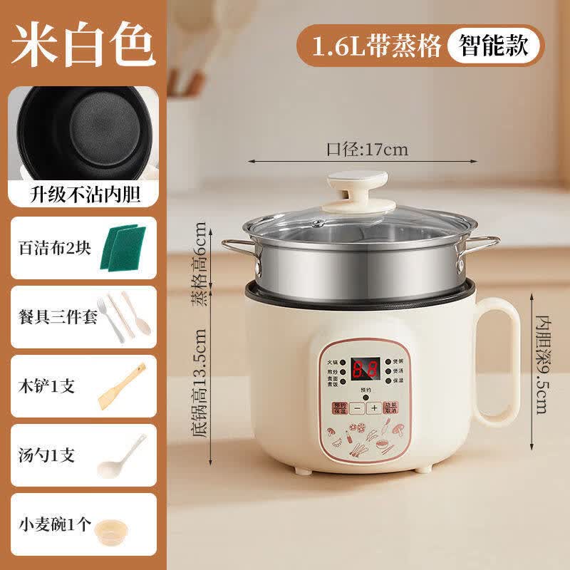 小米宝宝小电饭锅小2人小型迷你电饭煲1人家用可蒸煮锅多功能学生宿舍 白锅带蒸笼-【智能款】可预约-定时-保温 1.6L