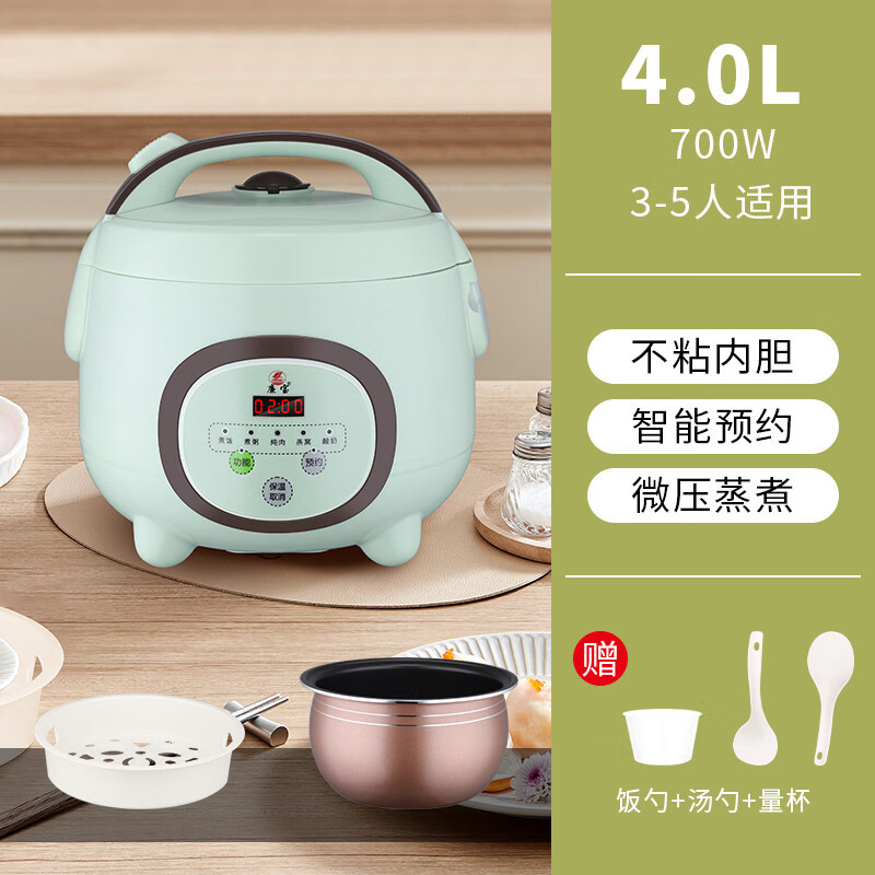 小米宝宝家用电电子锅2一3人迷你电饭锅4升1-2多功能智能老式小型蒸米饭煮 浅绿色智能款【球型内胆】5~6人用 4L