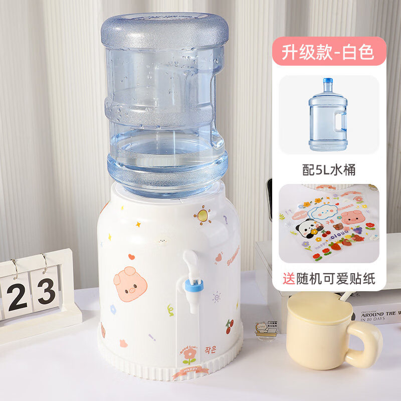 小米宝宝饮水机可携式迷你小型饮水器桌面台式桶装水抽水器矿泉水桶取水龙头 圆肚款+5升PC桶组合【送贴纸】 制冷制热型 温热