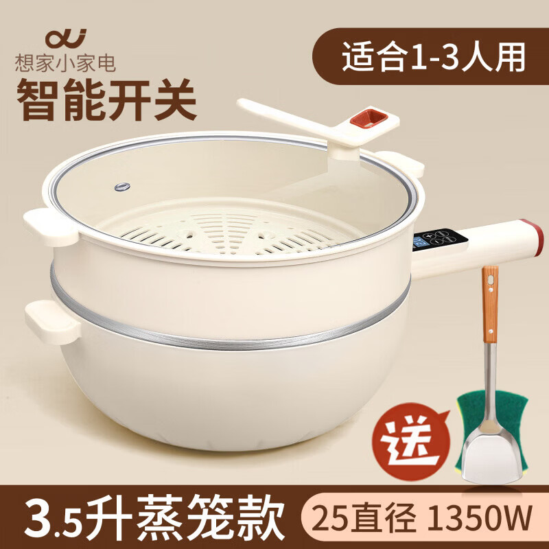 小米宝宝5电炒锅蜂窝不锈钢不粘锅家用一体火锅电煮锅煎炒菜锅蒸锅3宿舍 3.5智能蒸格款(可用铁铲)1-3人用