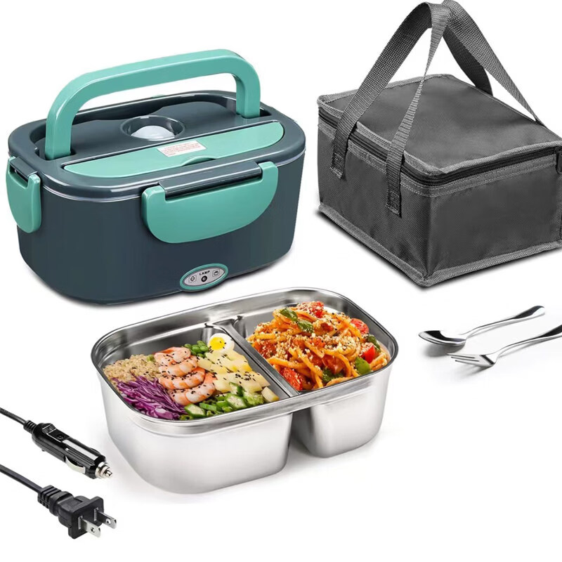 小米宝宝多功能电热饭盒车载12V24V不锈钢内胆家用上班族插电加热保温饭盒 1L 12V24V220V车家两用款【墨绿色】