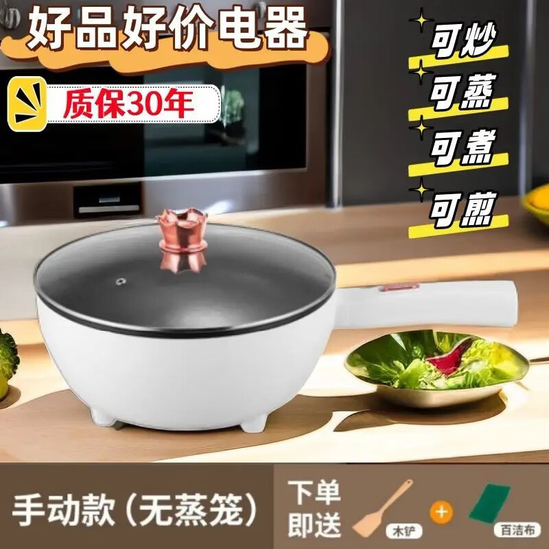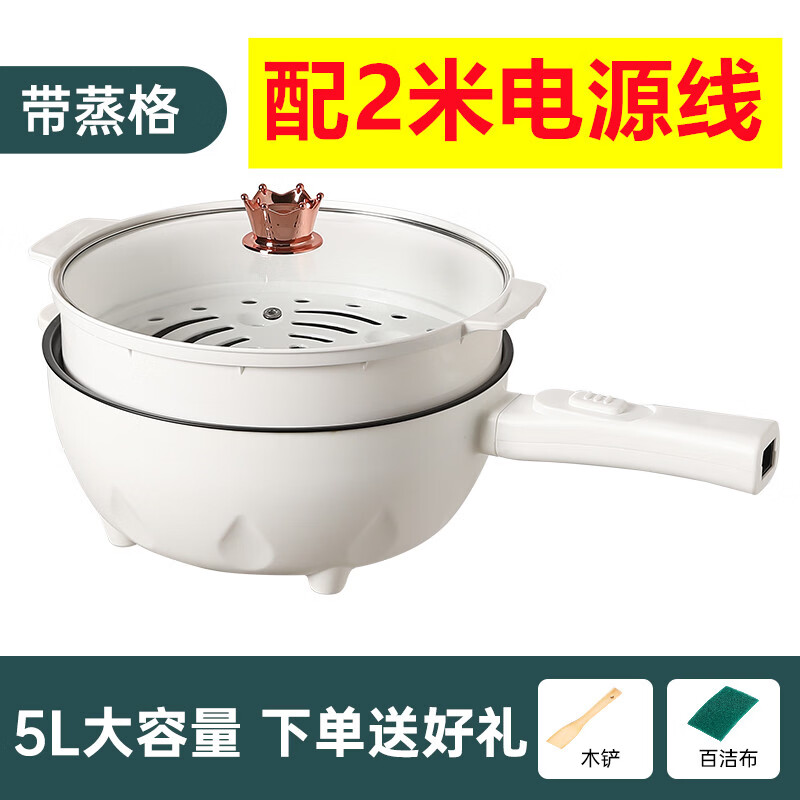 小米宝宝电炒锅家用大容量智能蒸煮炒菜爆炒多功能不沾锅电煮火锅宿舍 旗舰款5L+蒸笼【配两米电线】