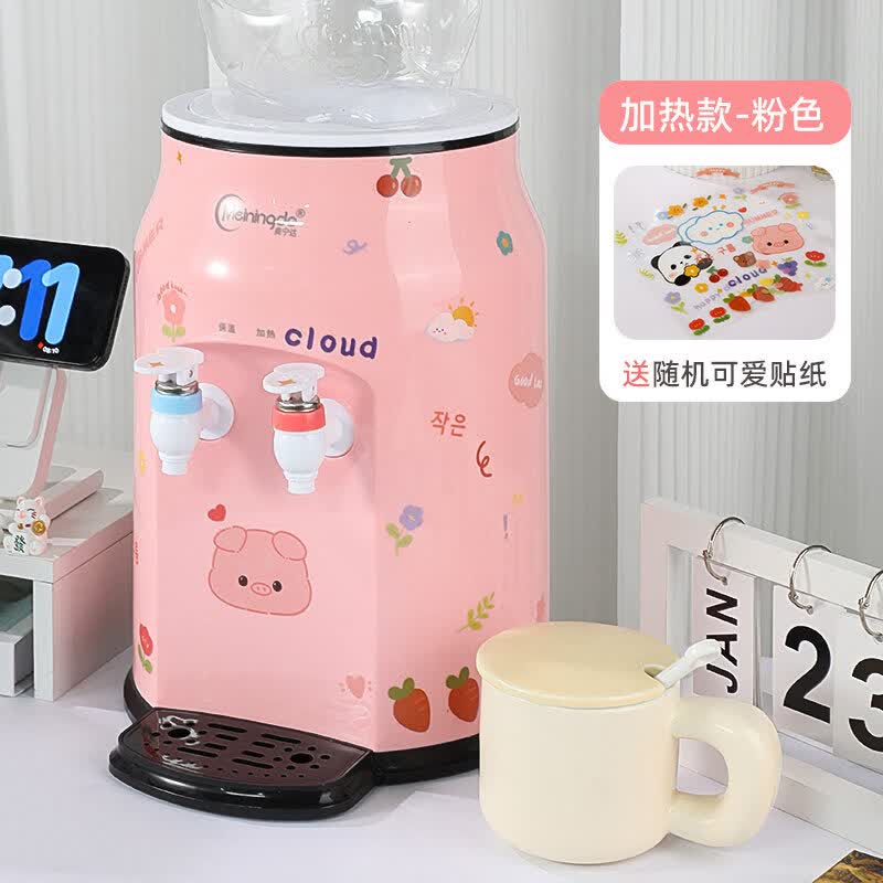 小米宝宝饮水机可携式迷你小型饮水器桌面台式桶装水抽水器矿泉水桶取水龙头 粉色双头【可加热 自动恒温】 送贴纸 制冷制热型 温热