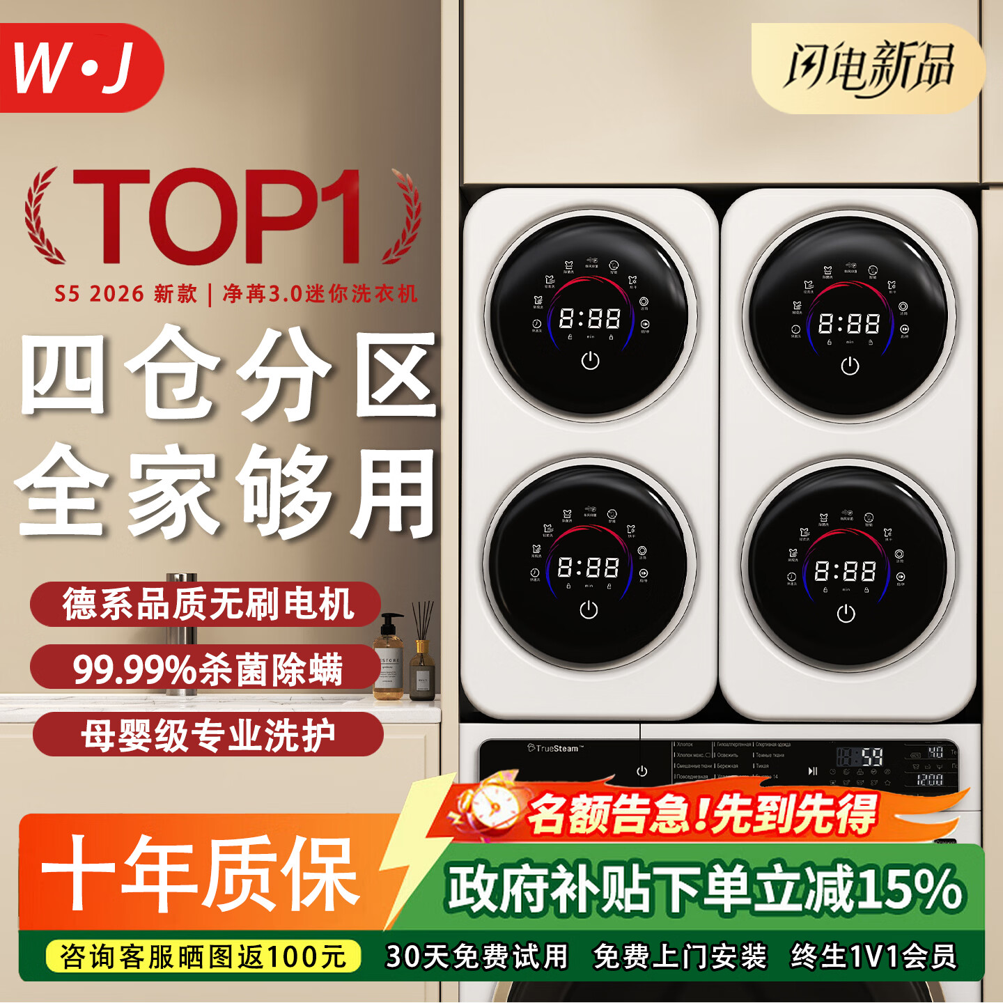 万家能【2026新品 | 内衣洗衣机 】迷你双筒全自动家用壁挂小型洗烘一体双桶除菌内裤洗袜子专用洗衣机 26年白款【双台】四筒洗衣机 | 洗烘一体 【桌面款】可嵌入可放置