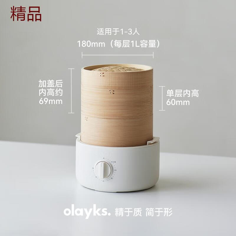 立时竹笼电蒸锅多功能家用小型早餐机蒸煮一体包 小号双层定时款