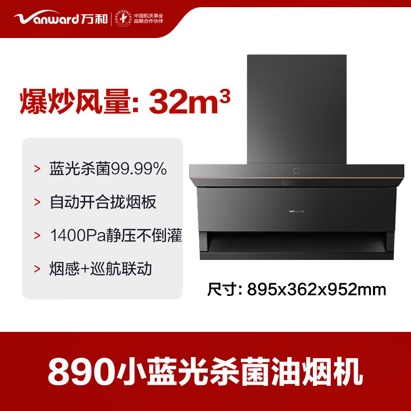 万和(Vanward)[]小双翼蓝光L8抽油烟机家用厨房顶侧双吸烟机WL890 WL890 32m³/min 黑色 带其它配件