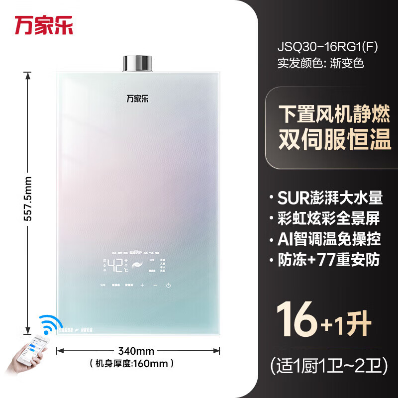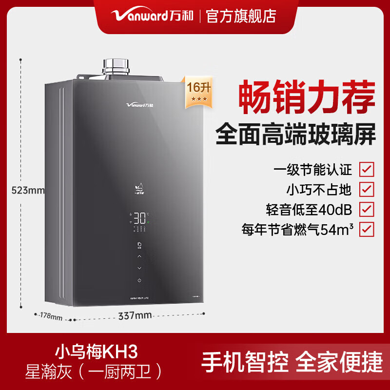 万和(Vanward)[重磅新品]燃气热水器家用天然气1级节能下置风机官方 JSQ30-16KH3 16L星瀚灰 天然气