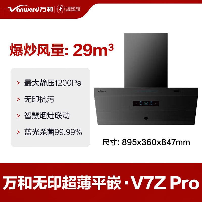 万和(Vanward)[]无印小双翼超薄平嵌大吸力油烟机抽油烟机V7ZPRO 29m³/min 黑色 带其它配件 新品首发