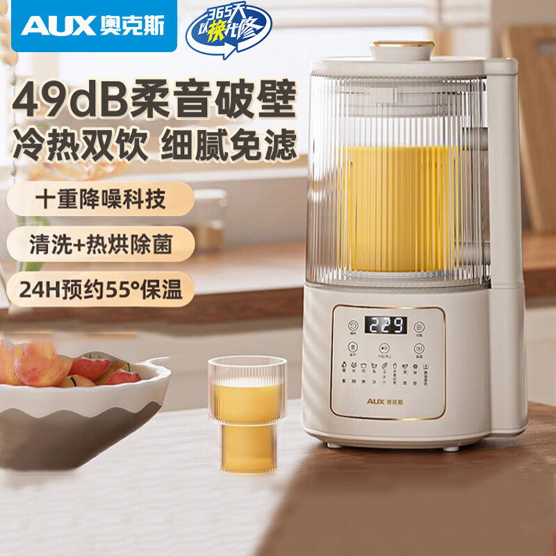 奥克斯破壁机豆浆机全自动免煮2025新款大容量3-4-5人用冷热双打家用料理机办公室榨汁机免过滤静音辅食 十重降噪升级+不粘防糊底