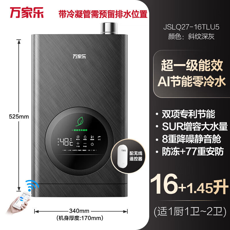 macro节能王TLU5燃气热水器超一级能效零冷水恒温洗澡家用天然气 JSLQ27-16TLU5 16L斜纹深灰 天然气