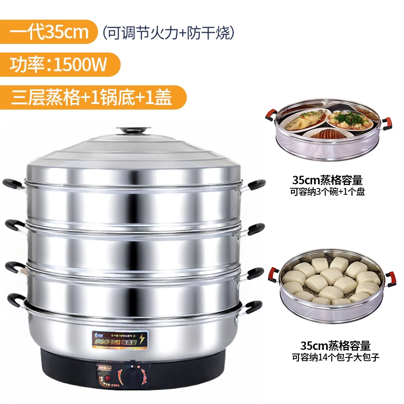 超大容量电蒸锅多功能家用商用不锈钢三层电蒸笼蒸煮一 35CM一代【调火力+自动断电】送蒸布5-8人
