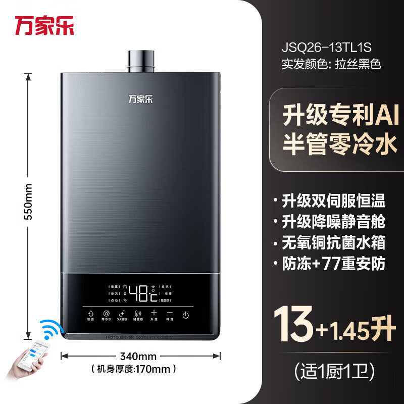 macro安睡洗零冷水燃气热水器家用水伺服恒温静音天然气TL1S JSQ26-13TL1S 13L黑色拉丝 天然气