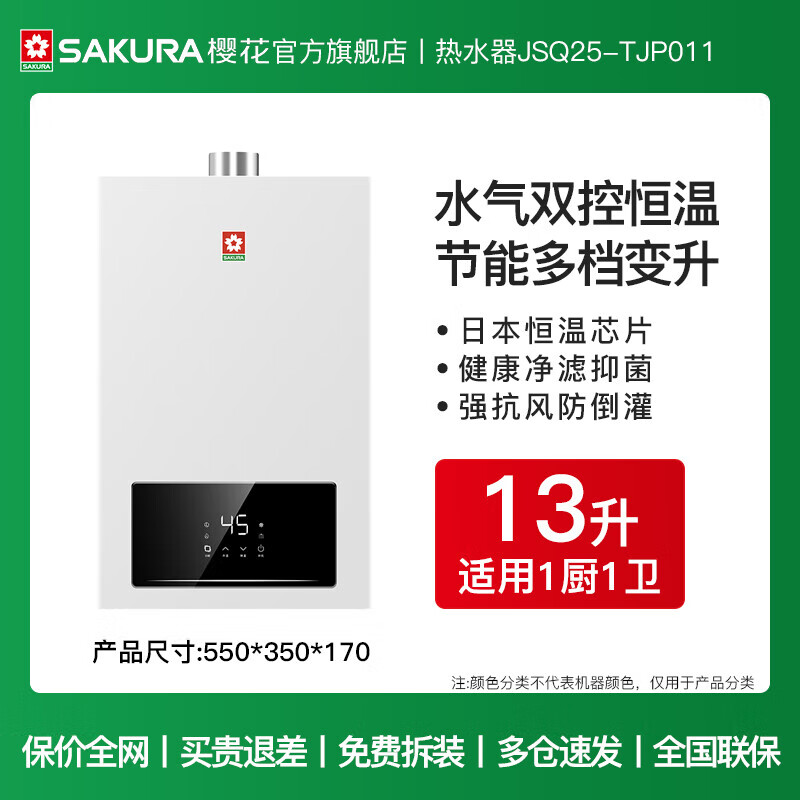 樱花(SAKURA)燃气热水器 水量伺服恒温强排式家用天燃气液化气店 JSQ25-TJP011白色 天然气