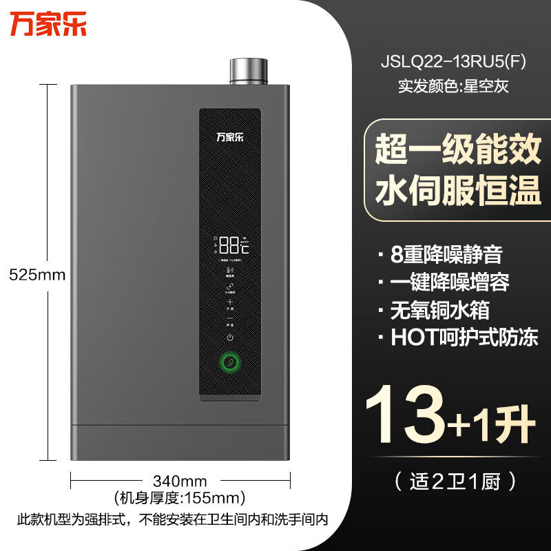 macro燃气热水器一级能效RU5气伺服恒温家用13L16升 JSLQ22-13RU5(F)星空灰 双一级能效/ 天然气