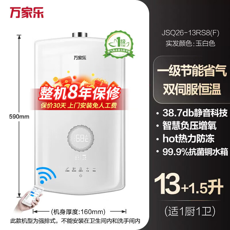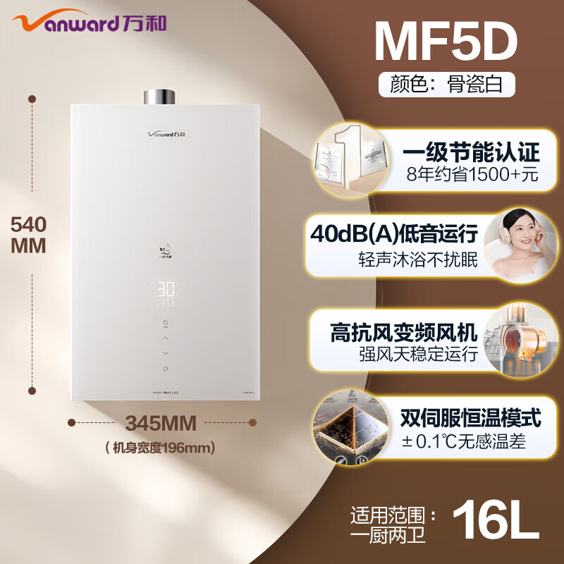 万和(Vanward)[] 一级节能双伺服恒温燃气热水器MF5D JSQ30-MF5D16 16L骨瓷白 天然气