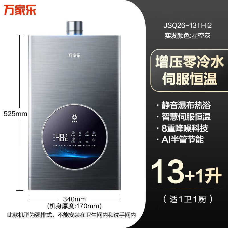 万和(Vanward)安睡洗静音恒温增压零冷水16燃气热水器F9PRO/MAX JSLQ27-F9D16PRO 黛紫灰 恒温版 天然气