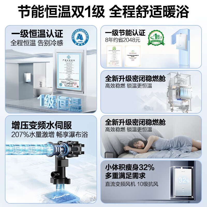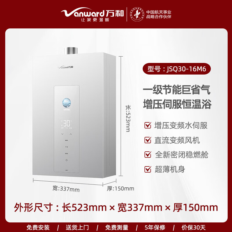 万和(Vanward)以旧换新双伺服增压恒温一级节能气燃气热水器ME5T/M6 JSQ30-16M6月光银 免费安装+送货上门 天然气