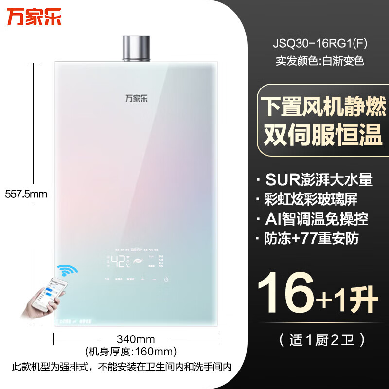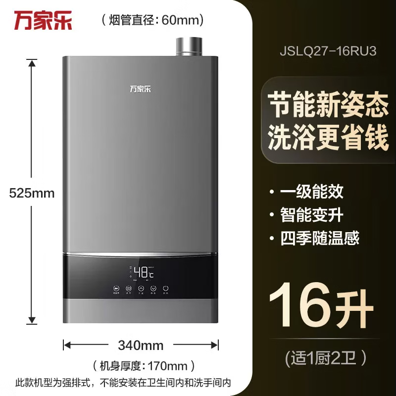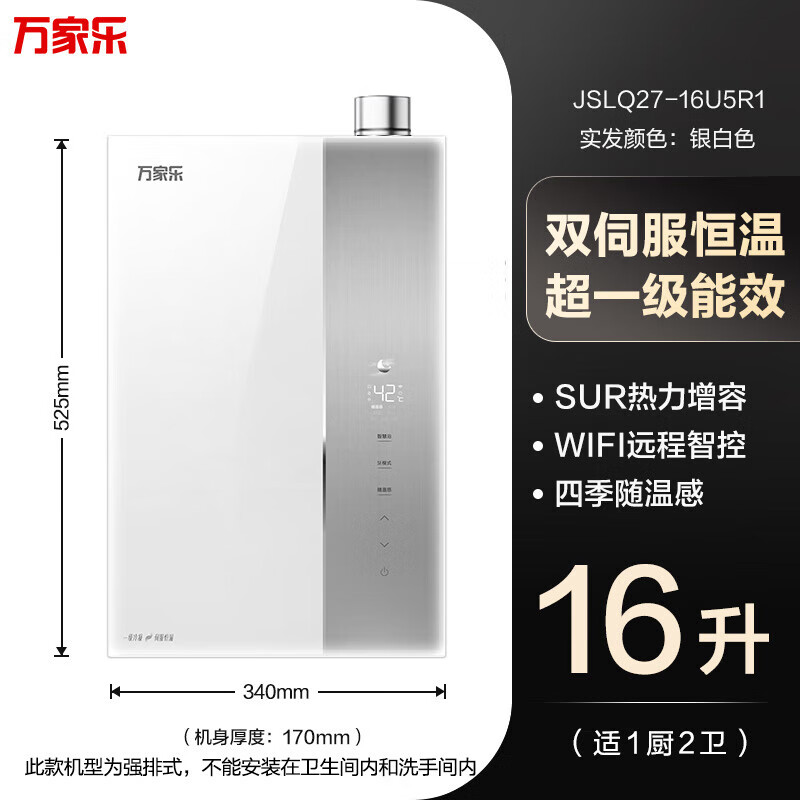 万和(Vanward)[]燃气热水器家用气一级能效零冷水恒温16升LS7D JSLQ27-LS7D16曙光银 天然气