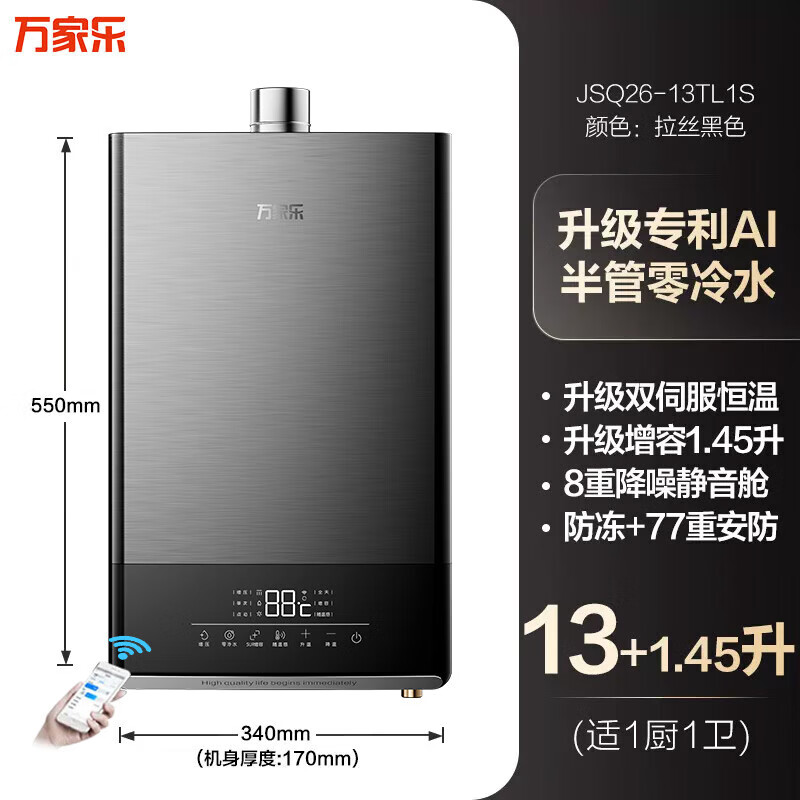 macro伺服零冷水燃气热水器PL1/TL1S家用恒温13/16L JSQ26-13TL1S 13L黑色拉丝 【13+ 天然气