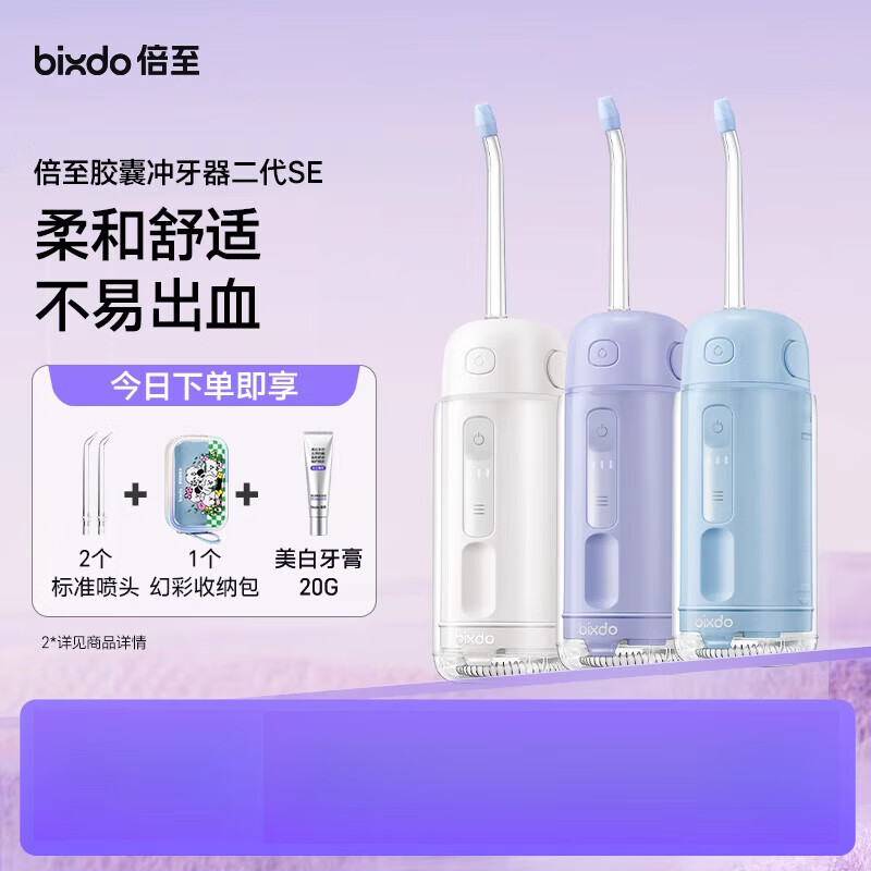 倍至便携胶囊冲牙机家用二代SE水牙线口腔清洁 暖瓷白