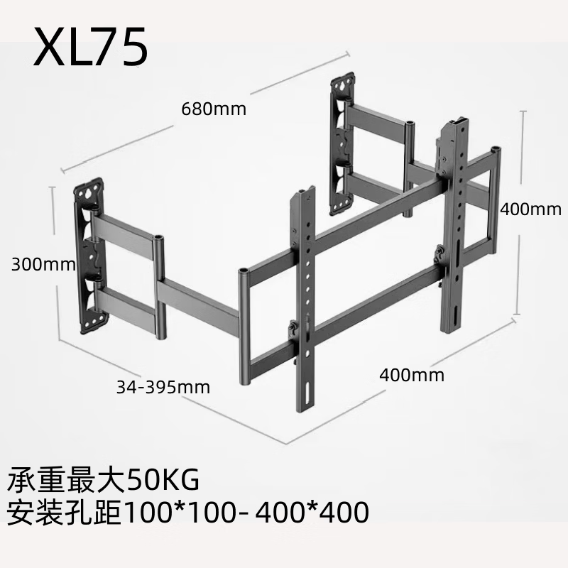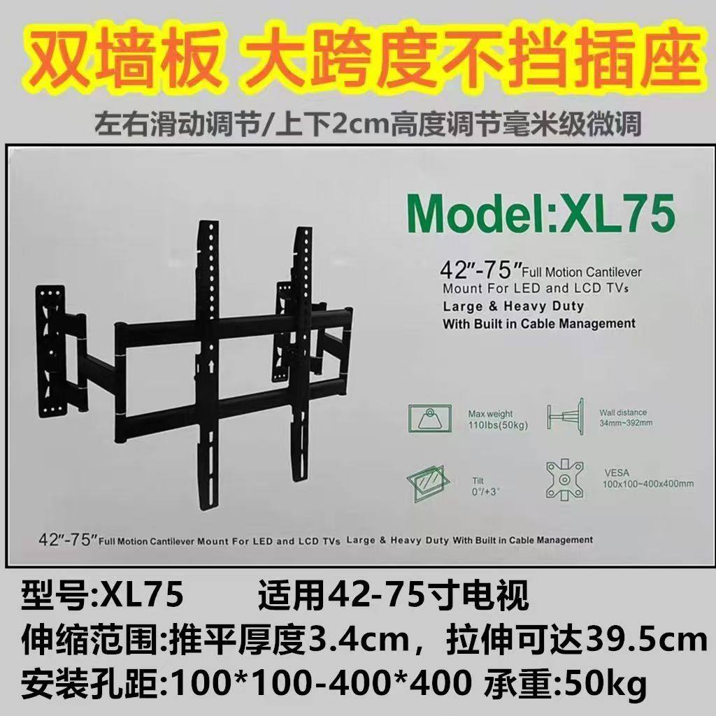 双幼超薄内嵌式电视伸缩挂架XL75 80 85 90 100 120不挡插座上下微调 XL75 42-75寸最大孔距400X400