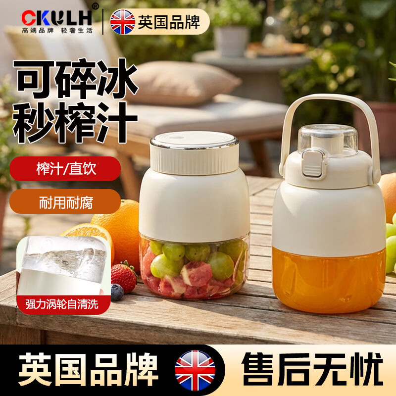 CKULH英国榨汁机家用小型便携式榨汁杯宿舍电动迷你碎冰果蔬果汁机小型便携吨吨杯自动榨汁杯运动果汁杯 白色便携果汁机