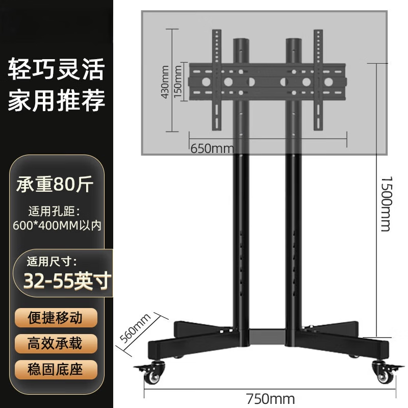 双幼电视移动支架落地推车触摸一体机视频会议通用32/55/65/75/86英寸 【标准款-无托盘无装饰壳】32-55英寸