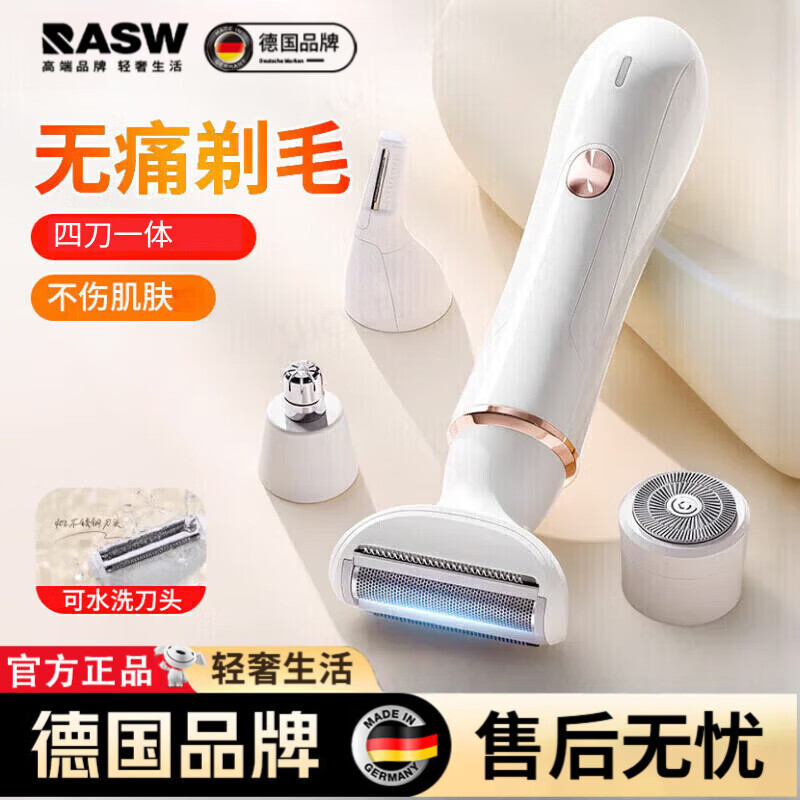 RASW【德国品牌】女士剃毛器多功能四合一私密脱毛器家用全身电动阴部腋下腿毛脱毛仪电动刮毛刀送女友 【二合一】精致白-全身可用 柔和不伤肤 女士专研丨不卡毛丨全身水洗