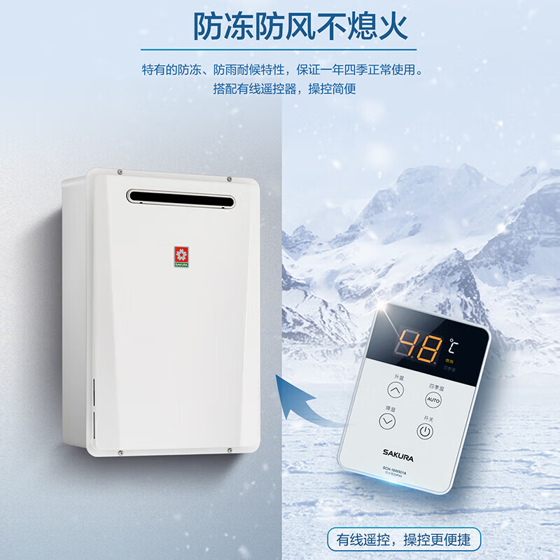 樱花(SAKURA)店16W501A恒温16升L室外机燃气热水器气防冻强排 JSW31-A白色 天然气