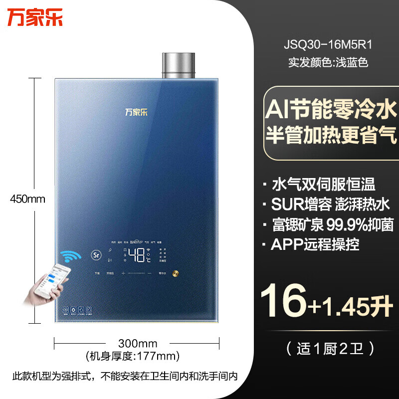macro燃气热水器家用16升M5R1小体积尺寸伺服节能零冷水 JSQ30-16M5R1 16L浅蓝色 零冷水双伺 天然气