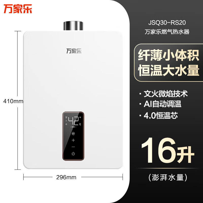 macro燃气热水器小体积尺寸家用恒温16升气变频RS20 JSQ30-16RS20 16L哑光白 天然气