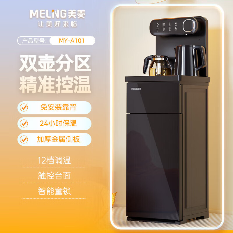 美菱(MeiLing)茶吧机新款2025双壶保温智能多功能客厅净饮机下置水桶饮水机 【黑色】双壶分区+加厚侧板即热制冷型 即热制冷型 温热