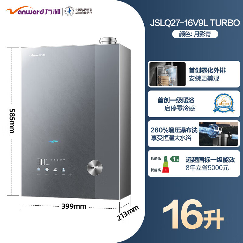 万和(Vanward)安睡洗一级节能16升恒温天燃气家用增压热水器V9L TURBO JSLQ27-16V9L TURBO 16L月影青 天然气