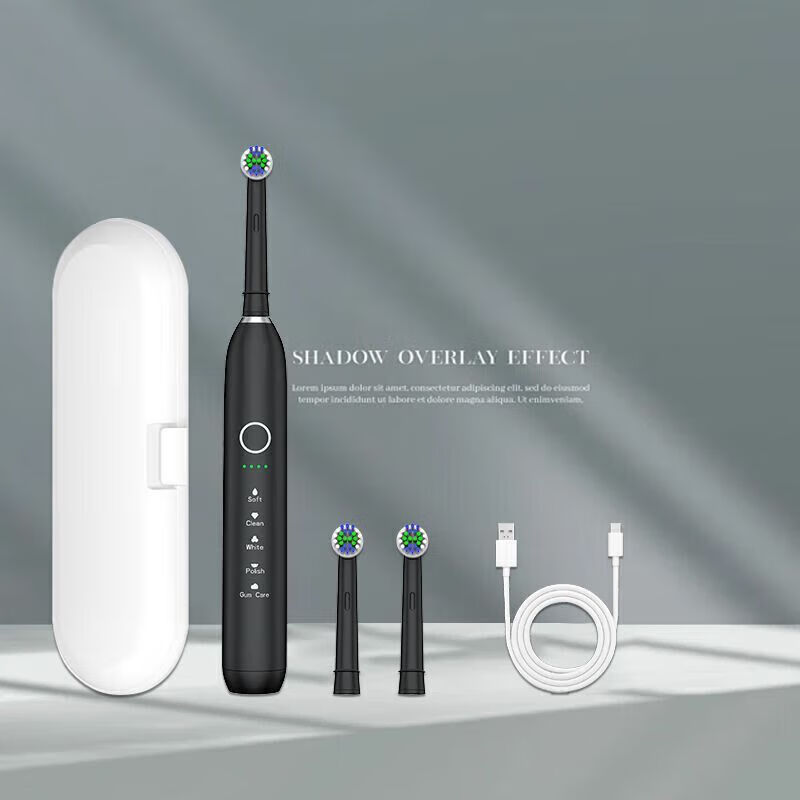 小米(MI)生态链同款防水充电式圆头旋转电动牙刷软毛深层清洁护龈牙刷情侣款洁牙仪器 黑色/USB充电/24小时发货/ 牙刷头【6个】