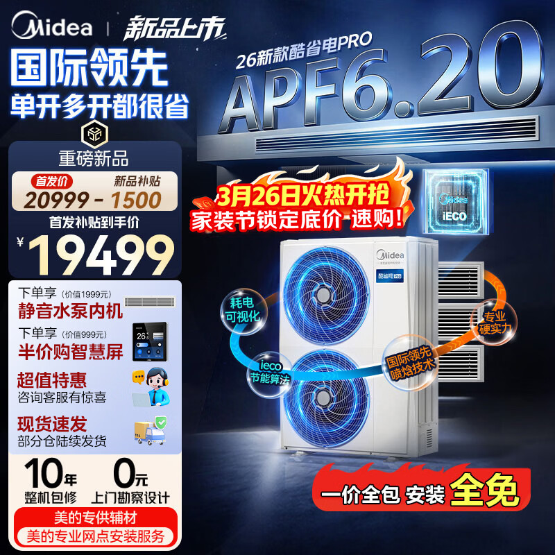 美的中央空调一拖三多联机5匹酷省电Pro 一级能效 两室一厅适用80~110㎡ MDS-125W-E01-KSP(4-1)