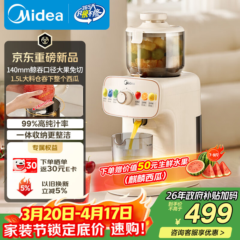 美的(Midea)NFC原汁机橙汁机多功能家用榨汁机电动冰淇淋果汁机渣汁分离辅食料理机MJ-ZZ15W3-066