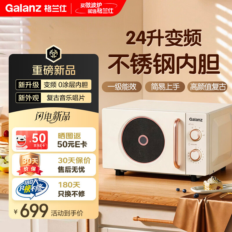 格兰仕(Galanz)变频一级能效 平板不锈钢内胆24L大容量家用机械旋钮操作简单 复古款 GPV24-DC 26年新品