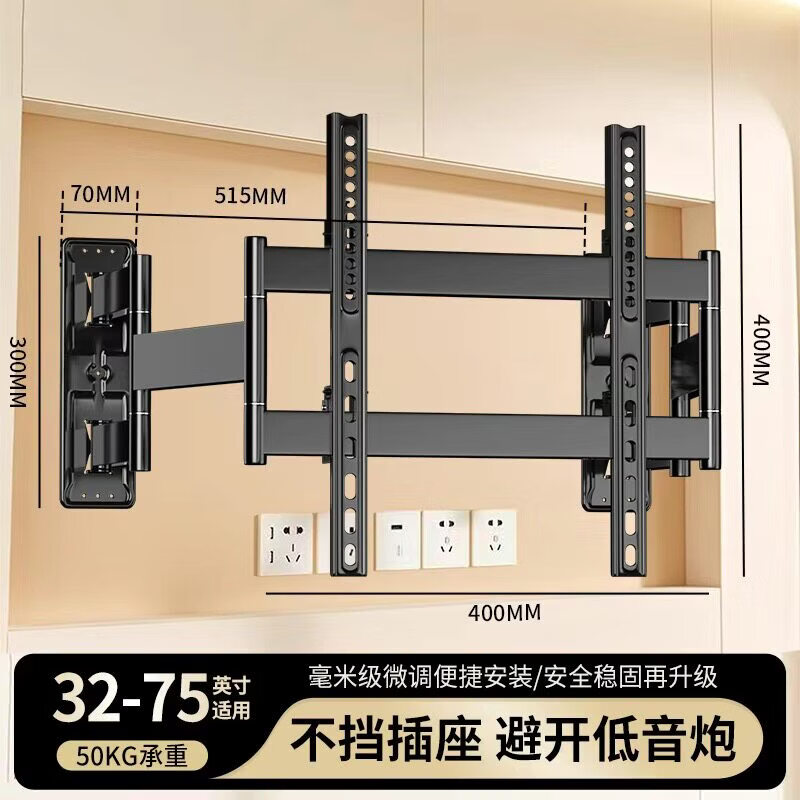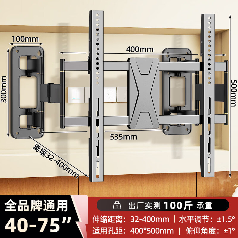 双幼超薄电视挂架55 75 82 85 86 98寸通用折叠拉伸缩旋转内嵌支架子 【40-80英寸】50kg承重