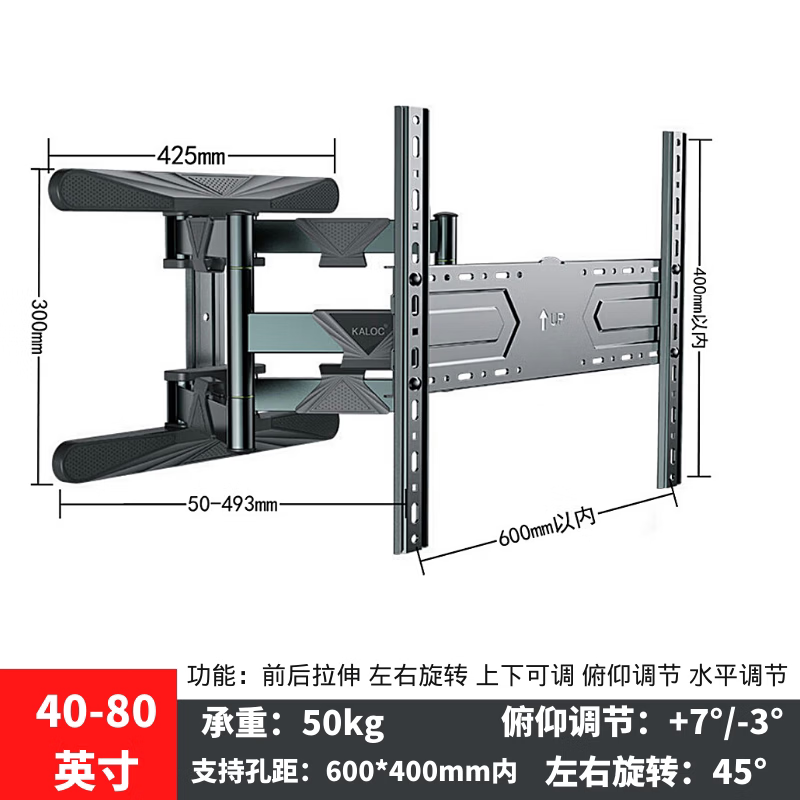 双幼液晶电视伸缩旋转支架24/32/43/58寸通用电视挂架挂墙架子 32-55寸加强耐用豪华款_掉落包赔