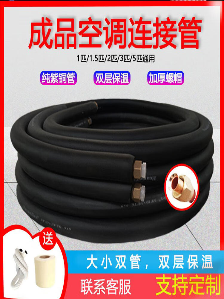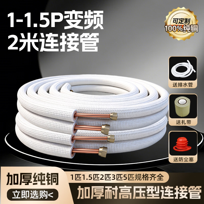 双幼空调铜管连接管加厚铜管变频固定频率大1hp 1.5 Hp 2hp 3hp成品可定制 1-1.5P变频特厚【6_10】紫铜管2米