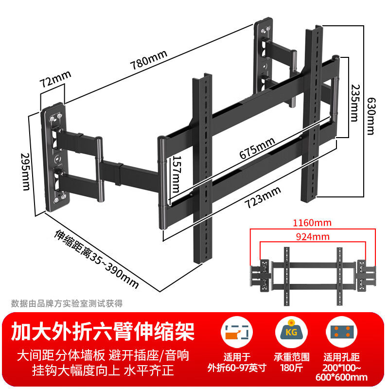 双幼通用电视机伸缩挂架壁挂折叠旋转支架适用于创维海信小米索尼75寸 【32-60英寸】升级六臂通用__超薄贴墙4cm