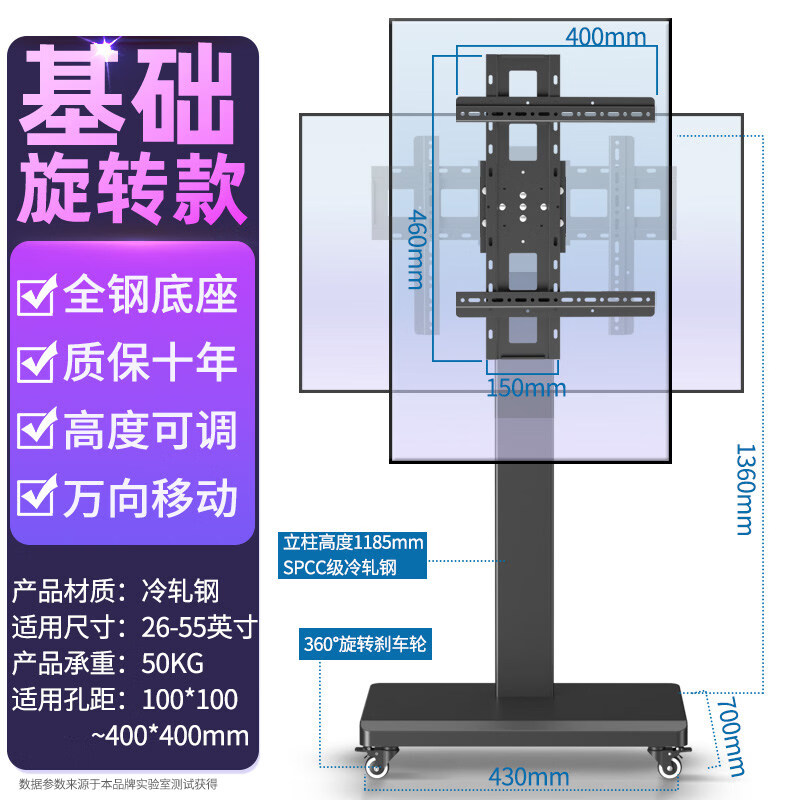 双幼65/75/85英寸电视机移动支架可旋转横竖屏360度带轮落地推车竖屏 【基础旋转款】32-55英寸-横竖屏直接旋转