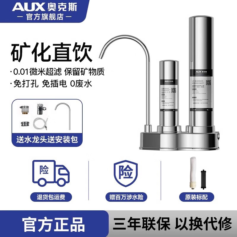 奥克斯(AUX)净水器家用不锈钢超滤直饮厨房前置自来水龙头过滤器饮水机 标准款 即热制冷型