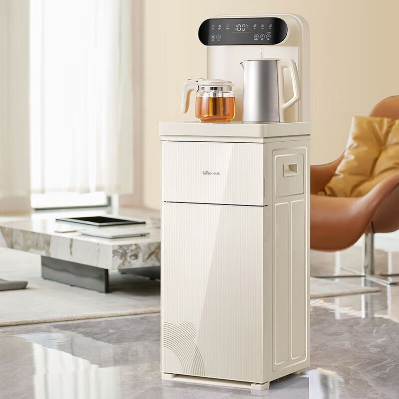 小熊(Bear)茶吧机2025新款家用全自动智能下置饮水机办公室制冷制热两用 【 免安装玻璃大屏】+抗菌管路+金属侧 即热制冷型 温热